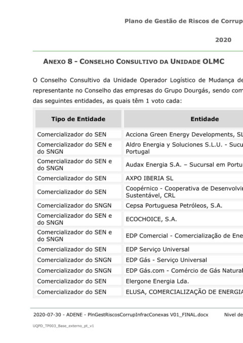 2020-07-30 - ADENE - PlnGestRiscosCorrupInfracConexas V01_FINAL.docx Nivel de Classificação de Segurança: Público Pag 52/55
