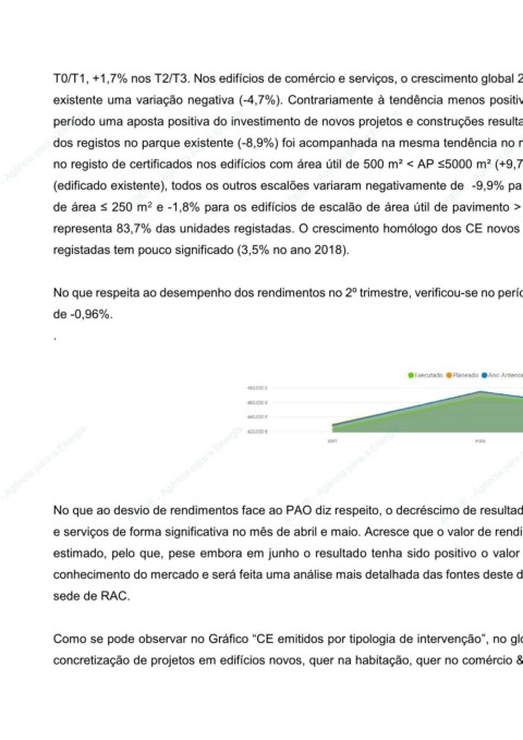 No que ao desvio de rendimentos face ao PAO diz respeito, o decréscimo de resultados deve-se à diminuição da evolução da certificação energética no setor de comércio