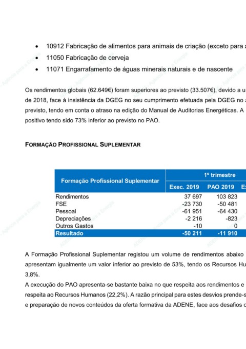 ADENE - Agência para a Energia • 11071 Engarrafamento de águas minerais naturais e de nascente