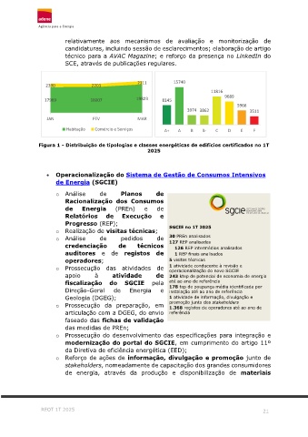 Figura 1 - Distribuição de tipologias e classes energéticas de edifícios certificados no 1T