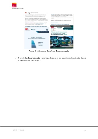 Figura 5 - Atividades de reforço da comunicação • A nível da dinamização interna, destacam-se as atividades do dia do pai e “agentes de mudança”. REOT 1T 2025 49