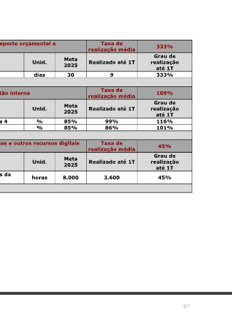 Aumentar o aperfeiçoamento dos processos de controlo e reporte orçamental e Taxa de
