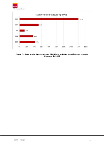 Taxa média de execução por OE OE.5 160% OE.4 52% OE.3 14% OE.2 36% OE.1 41% 0% 20% 40% 60% 80% 100% 120% 140% 160% 180% Figura 7 – Taxa média da execução da ADENE por objetivo estratégico no primeiro trimestre de 2025 REOT 1T 2025 68
