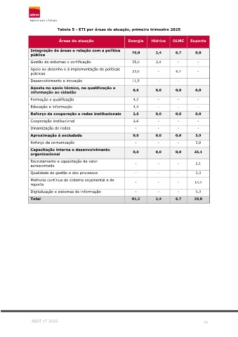 Tabela 5 - ETI por áreas de atuação, primeiro trimestre 2025