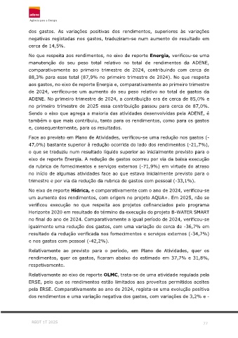 manutenção do seu peso total relativo no total de rendimentos da ADENE,
