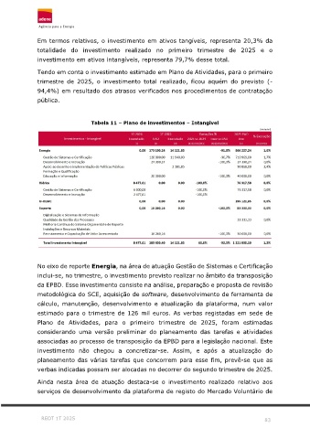 trimestre de 2025, o investimento total realizado, ficou aquém do previsto (-