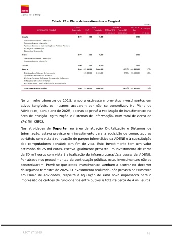 Atividades, para o ano de 2025, apenas se prevê a realização de investimentos na