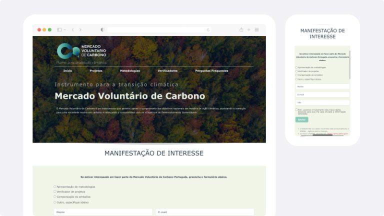 Formulário de adesão ao Mercado Voluntário de Carbono Português.