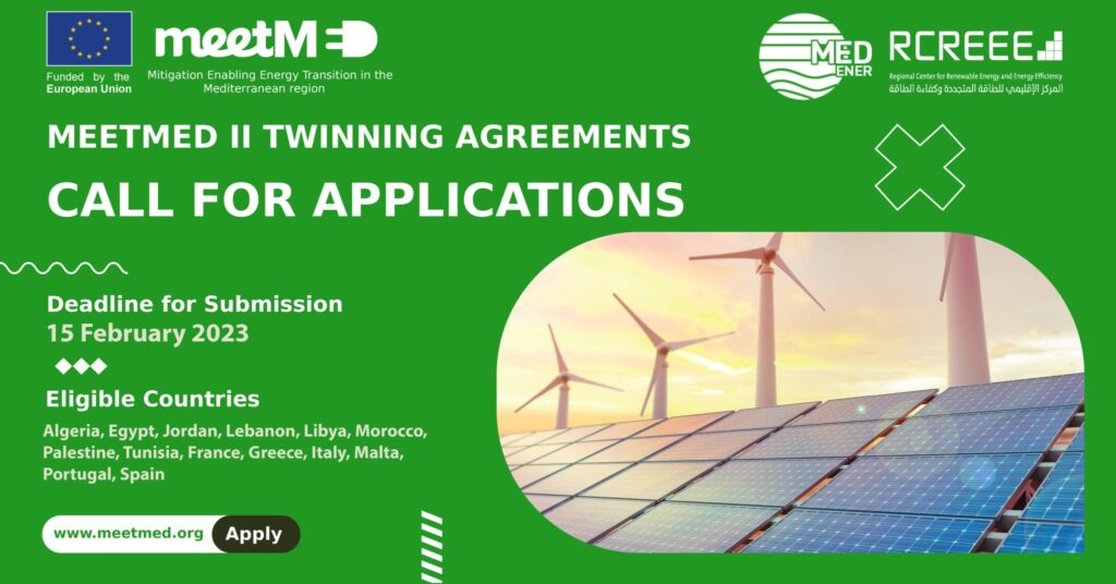 O projeto meetMED, do qual a ADENE enquanto Agência Nacional para a Energia é parceira, lançou uma CALL FOR APPLICATIONS para promover acordos de geminação entre cidades do Norte e Sul da Bacia do Mediterrâneo, com o objetivo de promover o diálogo e a troca de conhecimentos, fomentando a cooperação local em matérias de eficiência energética nos edifícios. A call é lançada no âmbito de uma atividade liderada pela ADENE.