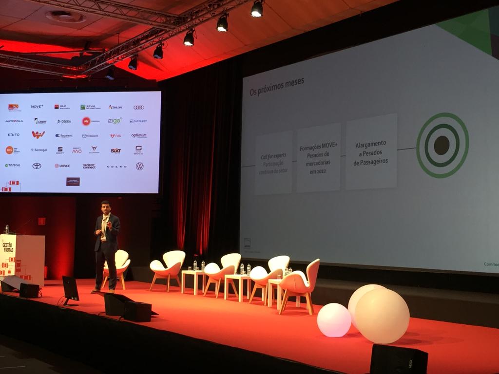A ADENE marcou presença na 9ª Conferência de Gestão de Frotas com a apresentação do Sistema MOVE+, dedicado a frotas de viaturas pesadas de mercadorias. O Gestor do sistema MOVE+, Hélder Rodrigues, apresentou o “MOVE+ na transição energética dos ligeiros aos pesados”, dando a conhecer a nova abordagem ao mais recente modelo de operação do sistema MOVE+, que contempla uma metodologia aberta que permite a qualquer entidade determinar o potencial de eletrificação e de redução de consumos da sua frota através do registo de dados da frota.