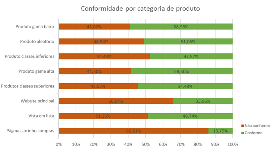 - Embora a página de detalhes do produto frequentemente apresente a etiqueta energética e o link para o PIS, as vistas de lista (“páginas de catálogo”) e, especialmente, as páginas de carrinho, frequentemente não apresentam a etiqueta energética ou o PIS de forma adequada.